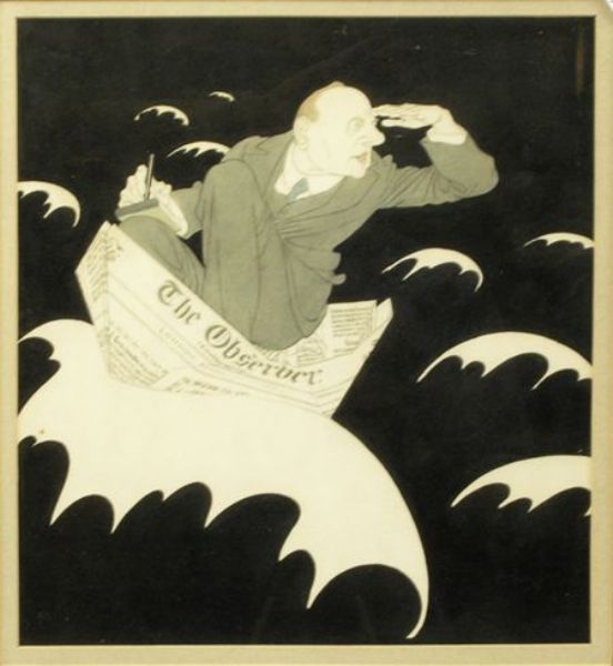 | THE OBSERVER - A FIGURE IN A PAPER BOAT ON THE HIGH SEAS | |