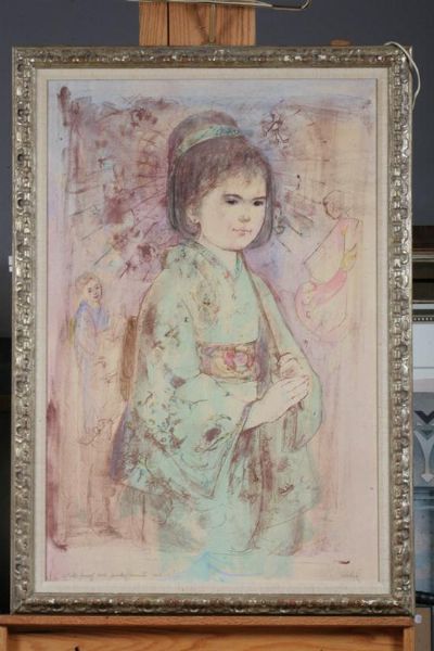 PORTRAIT OF SEATED GIRL IN KIMONO
