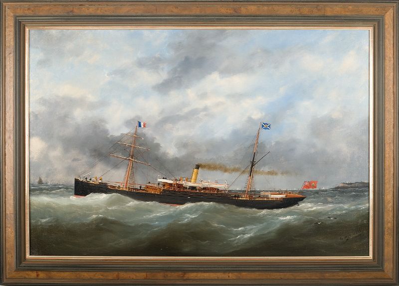 THE CANADIAN STEAM VESSEL "OLONDA" LEAVING CAP DE LE HEV, LE HAVRE, 1885