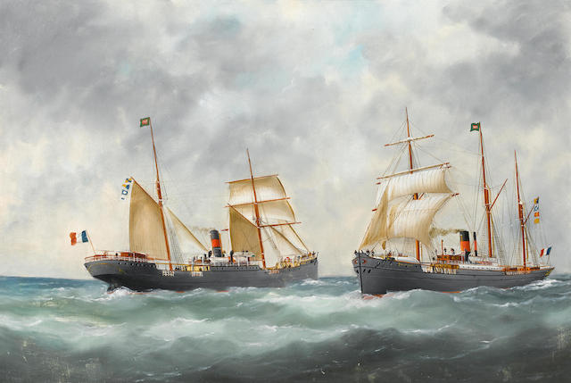 The ships La Pacifique and Tropique passing at sea