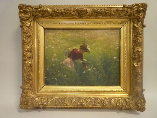 Jeune fille cueillant un bouquet.