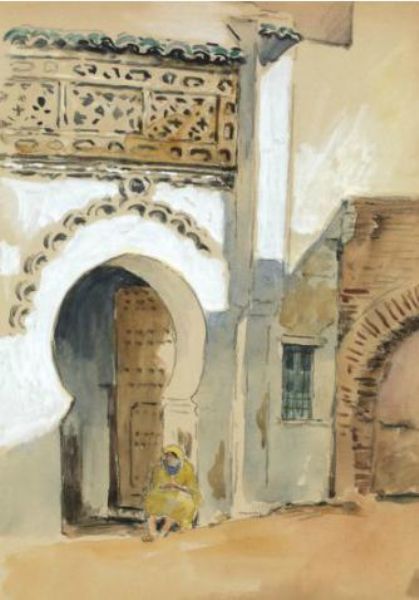 ORIENTAL ASSIS PRÈS D'UNE PORTE ORIENTAL