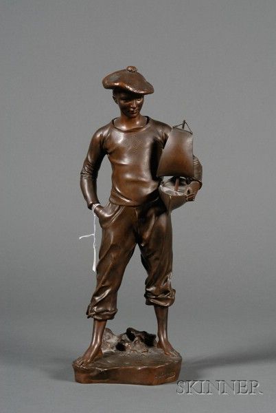 Figure of a Boy with a Toy Boat, the figure in beret and sweater