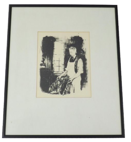 | Study of a gentleman wearing a white apron and examining a textile | |