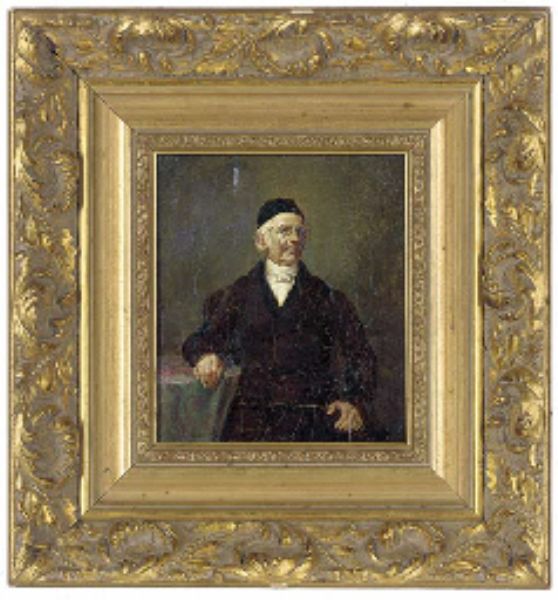 | Portrait of a Jewish gentleman, seated three-quarter-length, in a black coat, by a table | |