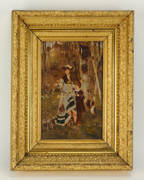Enhanced Portrait on Panel of Woman and Child in Landscape