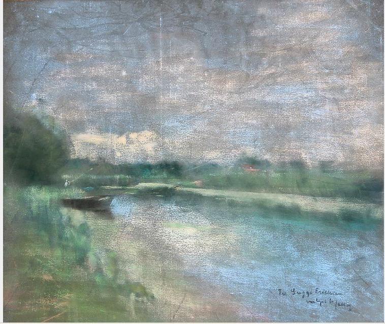 | Landscape with a river. Signed Saltfoft with a dedication of Guggi Eriksen | |
