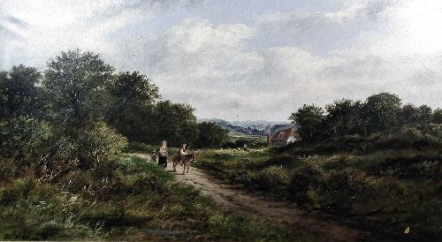 Country landscape with a young family on track to foreground