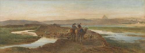 Egyptian shepherds, the pyramids in the distance