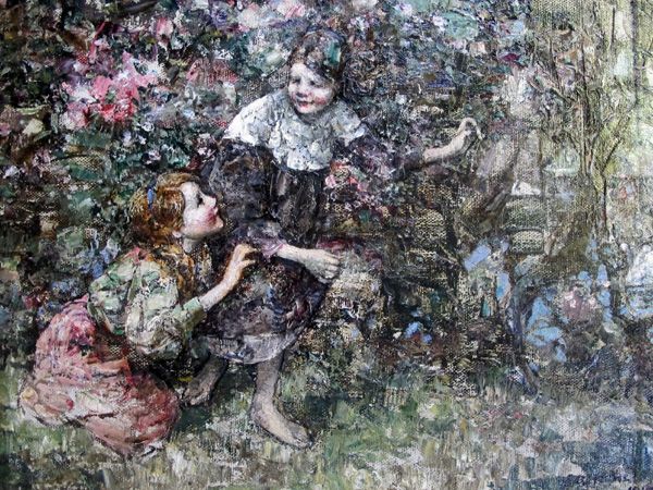 TWO GIRLS AMONGST BLOSSOMING TREES