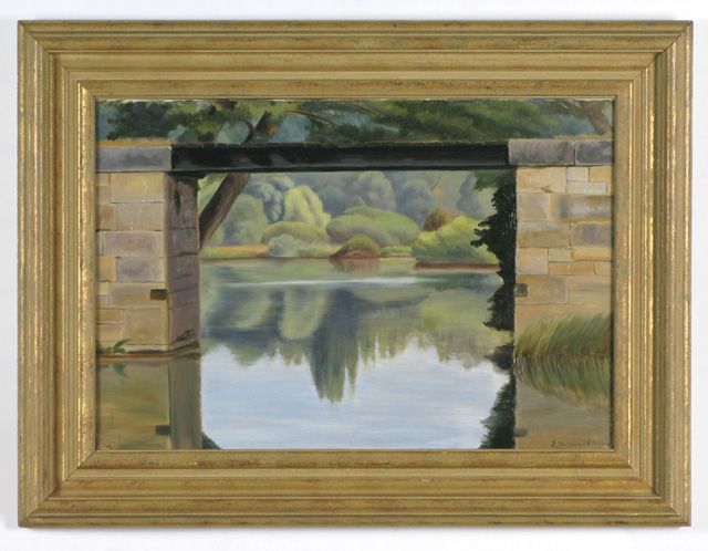 Landscape with lake and stone bridge