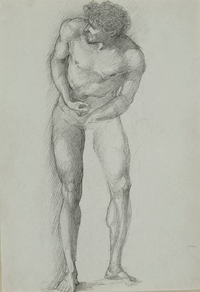 | A study of a male nude for 'Helen Captured; Troy in Flames' for 'The Troy Triptych' | |