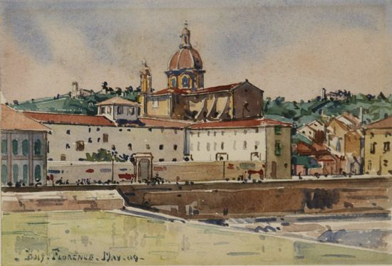 | View of a Church, Florence, View from Cernitoio, View of Ouchy and Impressions of Lake and Mountains: Group of Four Works | |