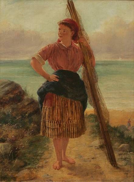 portrait of a young fisherwoman standing on a beach holding a furled net