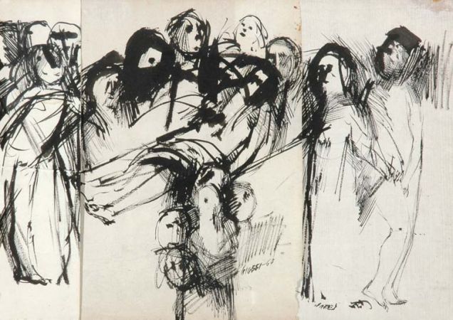 Pen and ink on three sheets of paper