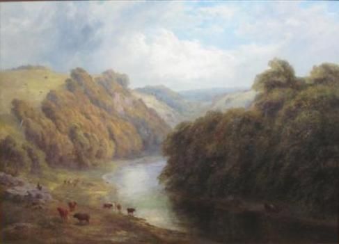 RIVER LANDSCAPE WITH CATTLE GRAZING