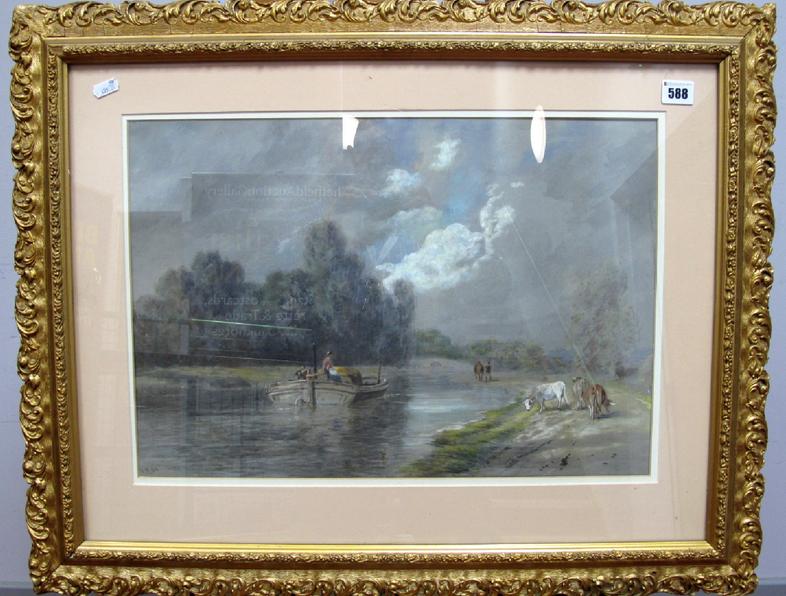 | ver Scene, with a barge drawn by a horse and watering cattle | |