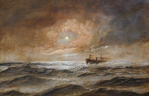 Nocturnal Shipping Scene, A Steamship and Clipper Passing in the Moonlight