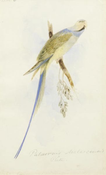 | A Malacca Parakeet, Palaeornis Malaccensis, an illustration for Lear's Natural History of Parrots, 1842 | |
