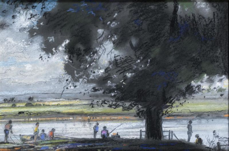 ON THE RIVERBANK; LANDSCAPE; BOATS IN AN ESTUARY
