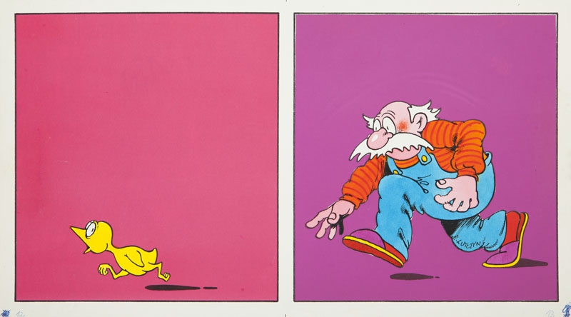 | Illustration for Wanda Chotomska's book "Kurcze blade", page 12 and 13 | |