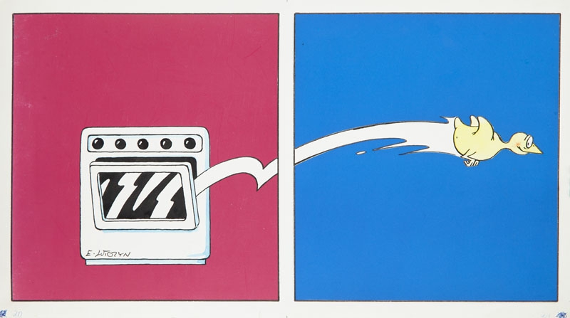 | Illustration for Wanda Chotomska's book "Kurcze blade", page 20 and 21 | |