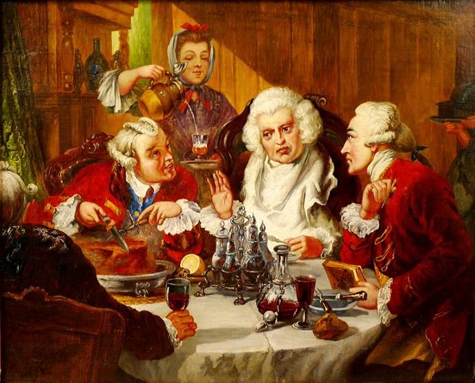 | DR JOHNSON AT DINNER WITH JAMES BOSWELL AND OLIVER GOLDSMITH | |