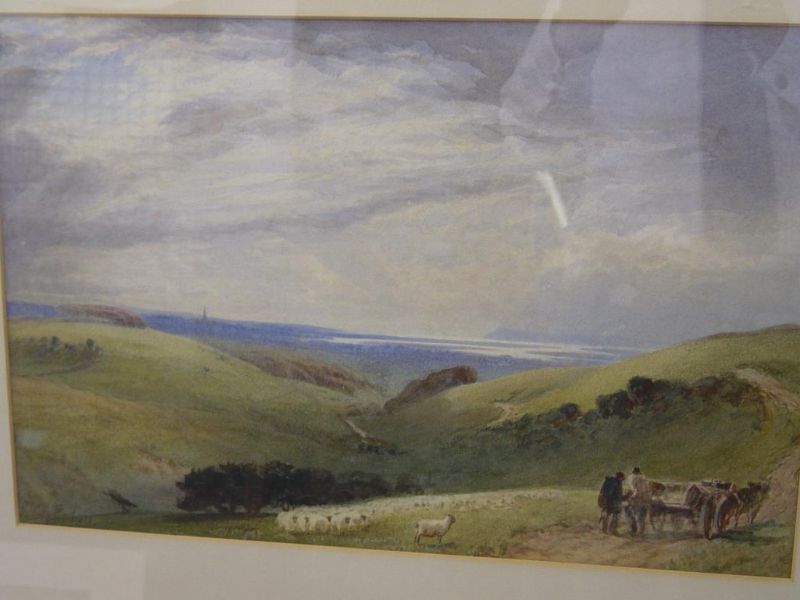 | FIGURES WITH A HORSE AND CART AND SHEEP IN DOWNLAND LANDSCAPE | |