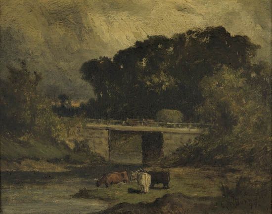 Untitled (Landscape with Bridge and Cows).
