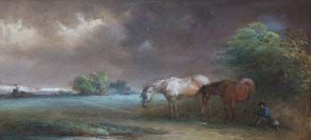 Rural landscape with horses and seated figure