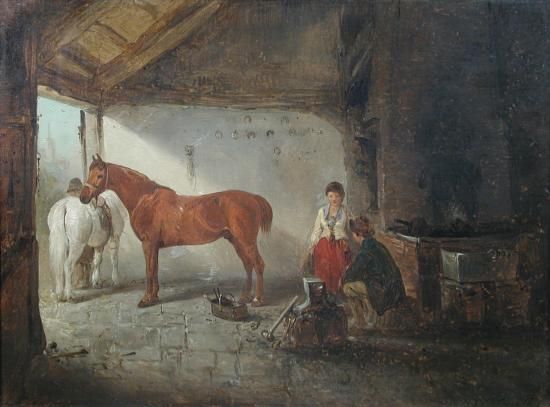 The Blacksmith's Shop, with a Chestnut Hunter and a Grey Pony