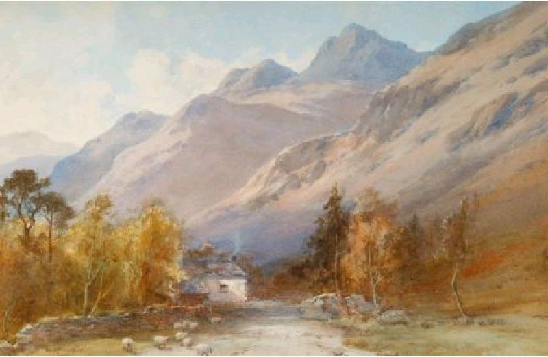 | Langdale Pikes, Cumbria, sheep and a crofter's cottage in the foreground | |