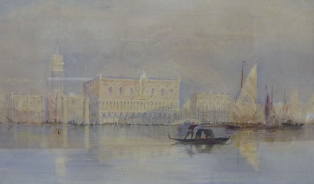 The Doges Palace, Venice, with gondolas and gondolier in foreground