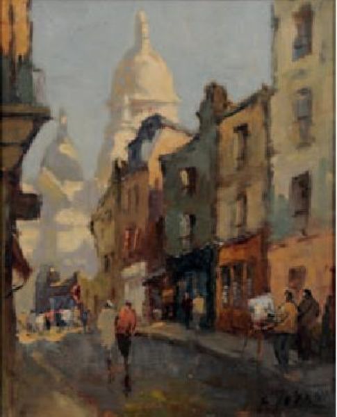 Paris street scene looking towards Le Sacre Coer