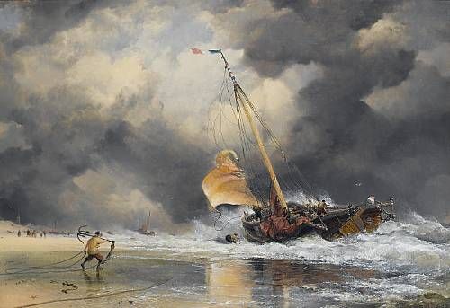 Dutch Boats : Rough Sea with Scheveling pinck getting off shore