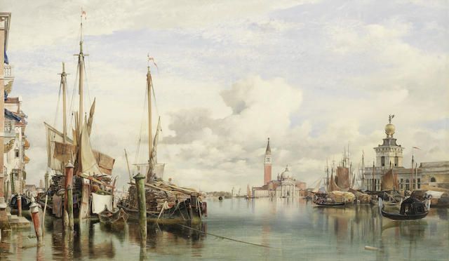 Trabaccoli carrying wood, San Giorgio Maggiore and the Dogana beyond