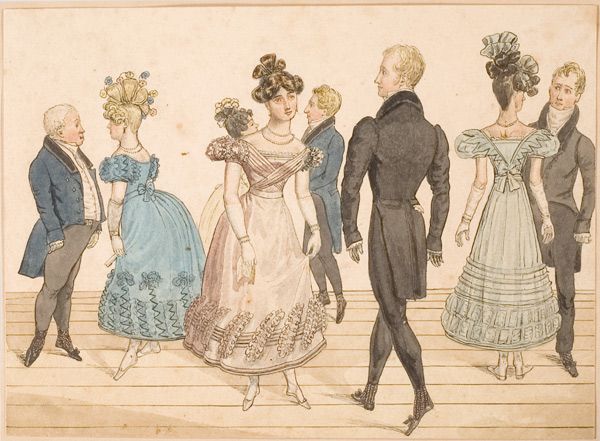 | As with the similar lot, no one is smiling and the women are depicted wearing exaggerated hairstyles. | |