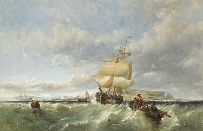 | SAILING SHIP APPROACHING HOWTH HARBOUR WITH IRELAND'S EYE IN THE BACKGROUND | |