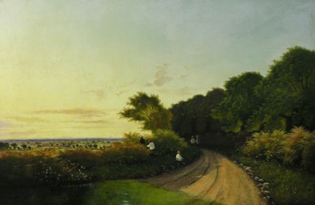 A WOODED LANDSCAPE WITH FIGURES BY A ROAD
