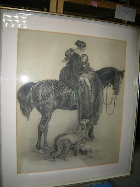 Portrait of a Lady on Horseback with her Child, and her Retrievers at the Horse's Feet