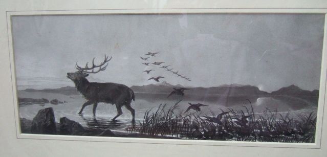 Stags in loch landscapes