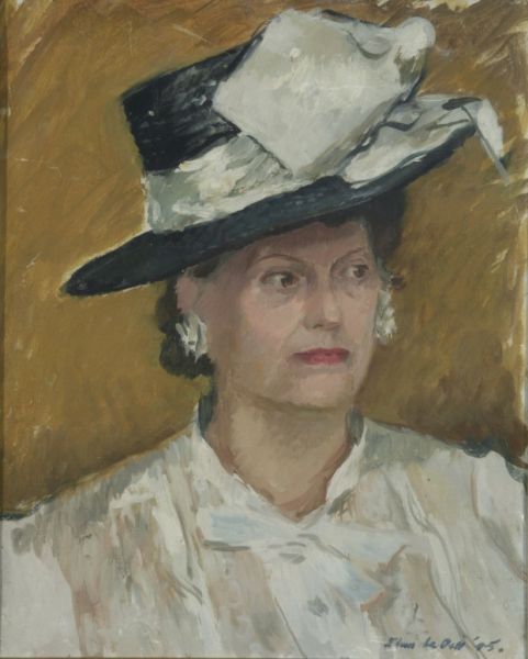 Portrait of a lady wearing a ribbon-tied hat,