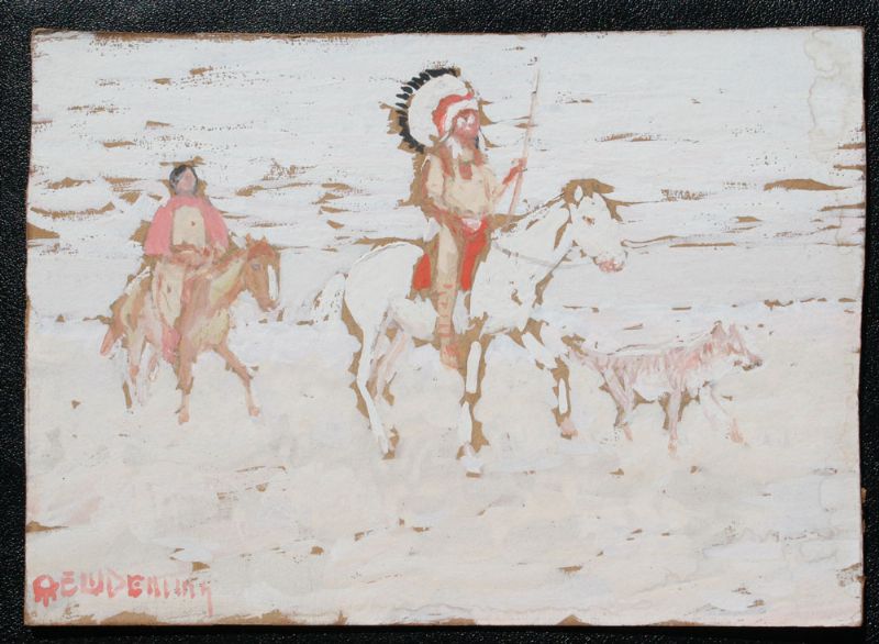 Indian Chief, Squaw and Dog on the Plain