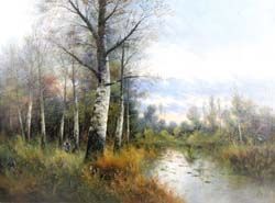 | Forest landscape in early autumn with a farmer's wife at the brookside | |