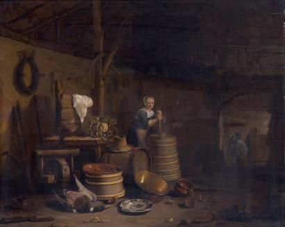 Le barattage du beurre dans un intérieur de cuisine