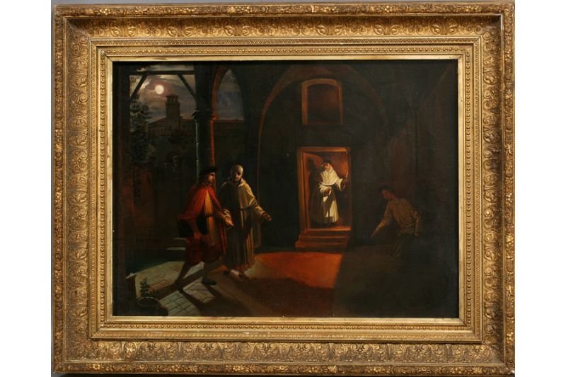 Nocturnal Scene, with figures in a court yard