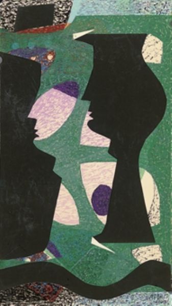 | Ink oil, pastel, biro and collage, unframed, 2 items | |