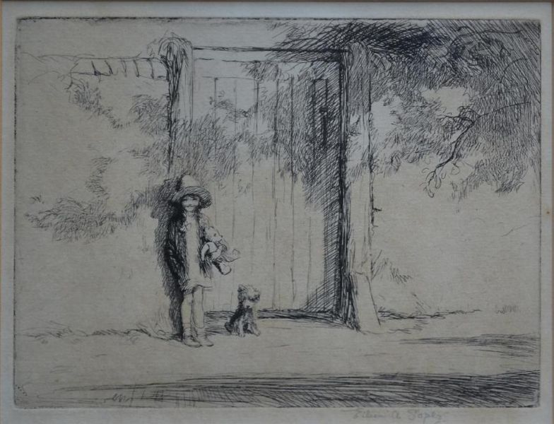 | 'The Garden Gate' (a young girl with her dog and teddy bear) | |