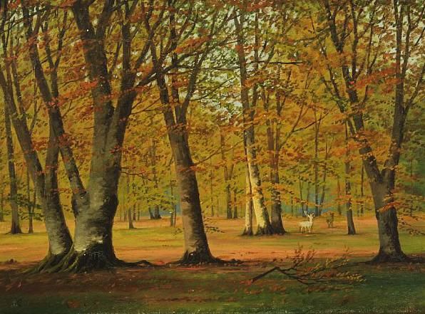 Autumn forest with deer.