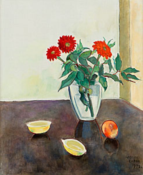 STILLEBEN MED BLOMMOR, CITRONER OCH APRIKOS
